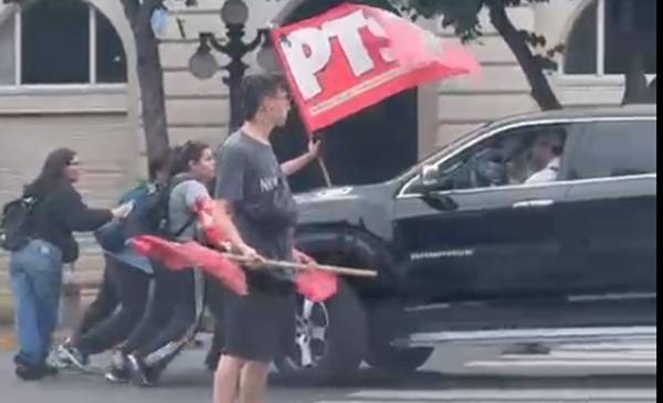 La protesta, que ocupaba parte de la calzada, generaba demoras en una zona de alto tránsito vehicular. En ese contexto, el automovilista avanzó hasta quedar prácticamente pegado a la columna de manifestantes, lo que desencadenó un intercambio de gritos, discusiones y gestos de enojo entre ambas partes.