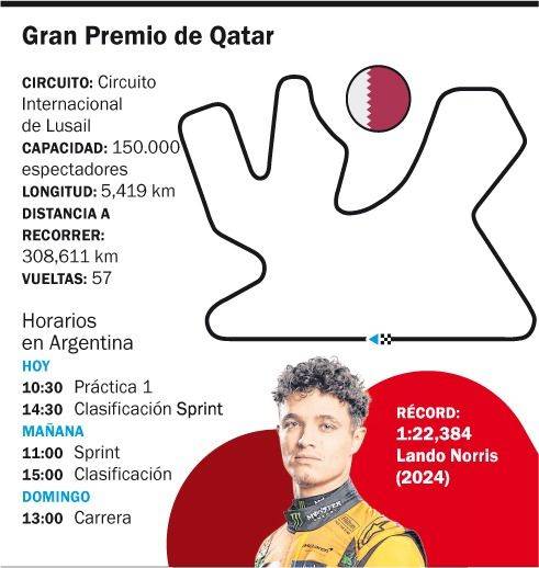El británico necesita sumar solo dos puntos más que Verstappen y Piastri en Qatar, por lo que en caso de quedar al menos sexto en la sprint de mañana y luego ganar la carrera principal del domingo, se consagrará campeón de la categoría reina del automovilismo.