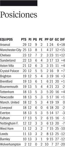Por otro lado, hoy desde las 13.30 en Stamford Bridge, Chelsea y Arsenal se miden por el clásico de Londres. Más temprano: 9.00 Palace-Manchester United; 11.05 West Ham-Liverpool; Forest-Brighton y Aston Villa-Wolves.