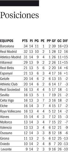 Por otra parte, el RCD Mallorca igualó 2-2 con el Osasuna, al tiempo que Atlético de Madrid recibirá al Real Oviedo en el Estadio Wanda Metropolitano y el Levante jugaba ante el Athletic Club de Bilbao.