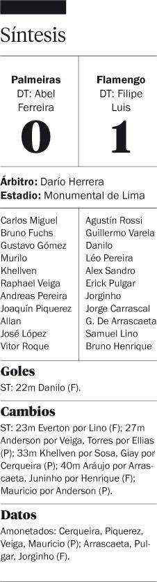 El Mengao derrotó 1-0 a Palmeiras en el Estadio Monumental de Perú, y se coronó como el nuevo campeón de la Copa Libertadores. Danilo fue el autor del único gol