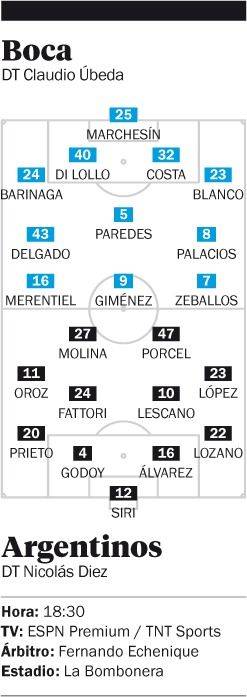 En lo que respecta al equipo, sufrió una impensada baja en la semana, Nicolás Diez repetirá el mismo once que eliminó al elenco de Guillermo Barros Schelotto. Más allá que Gonzalo Siri arrastra una molestia en la cadera, finalmente va a ser de la partida en La Bombonera, más allá de que el DT evaluó la chance de poner como titular al juvenil, Agustín Mangiaut.