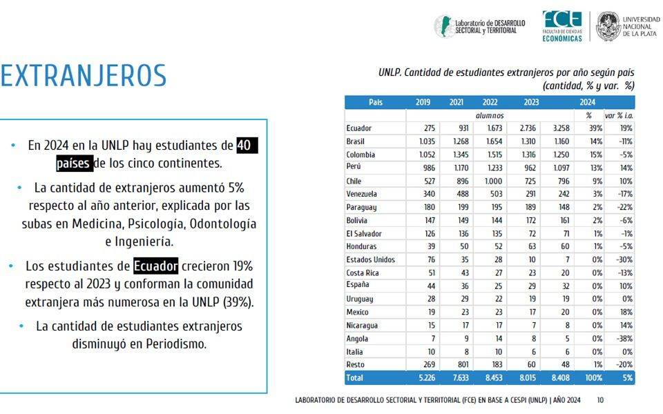 La Universidad Nacional de La Plata presentó su informe socio-demográfico 2024 el elaborado por el Laboratorio de Desarrollo Sectorial y Territorial de la Facultad de Ciencias Económicas.