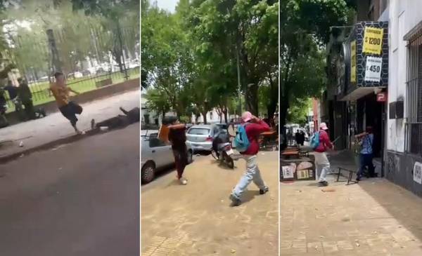 Según las imágenes que circulan en redes y a las que pudo acceder este medio, los alumnos cruzaron sillazos y provocaron daños en el mobiliario del comercio, luego de arrojar sillas y bancos, mientras otros clientes y transeúntes se alejaban para resguardar su seguridad. La escena captada por testigos muestra momentos de enorme violencia dentro y fuera del local.
