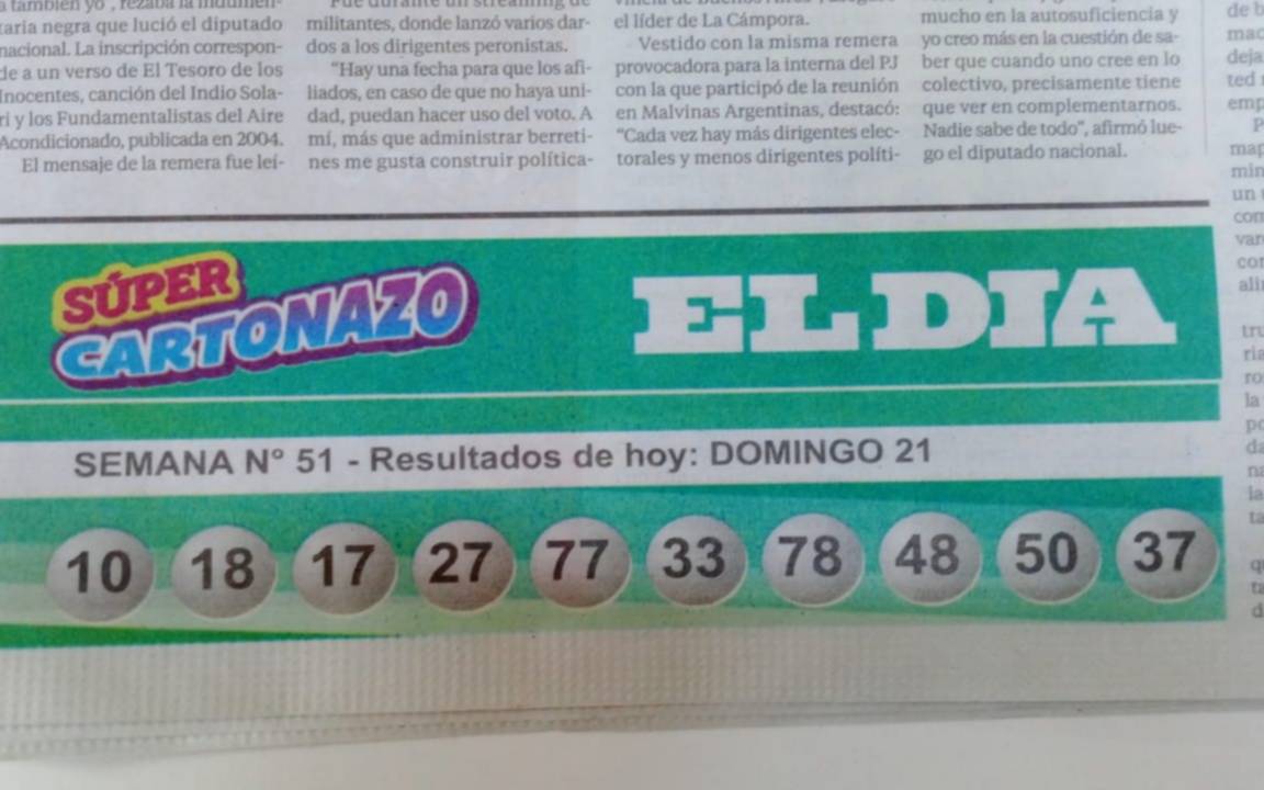Los números del Cartonazo con EL DIA: pozo de $1.000.000 y $300.000 de línea