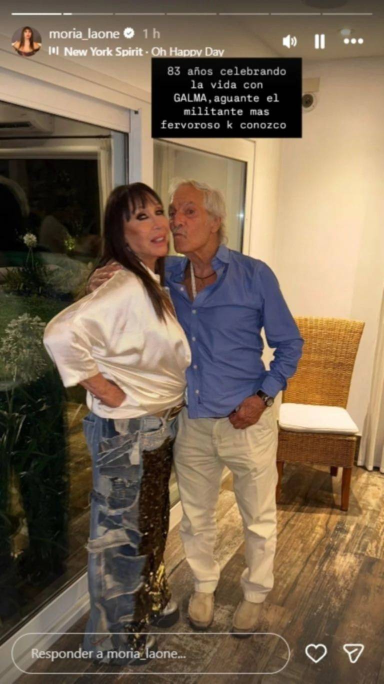Así, en las fotos, Moria aparece abrazada de Galmarini, quien le da un romántico beso en la mejilla para demostrar lo enamorados que están: “83 años celebrando la vida con Galma, aguante el militante más fervoroso que conozco”.