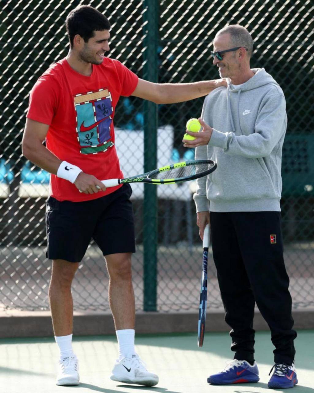 carlos alcaraz junto a su nuevo entrenador, samuel López / ig
