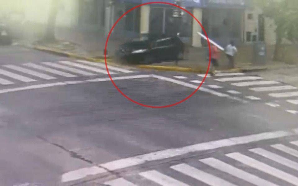 Allí, le pasa por centímetros a una mujer y otro peatón que pasaban por allí.