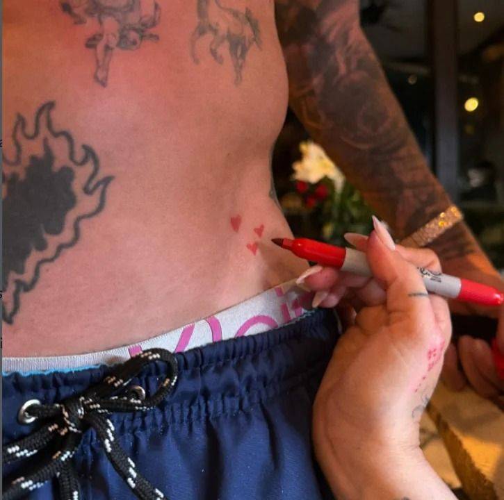 Uno de ellos fue un tatuaje reciente de De Paul, que consiste en tres pequeños corazones dibujados por la cantante sobre el costado del abdomen.