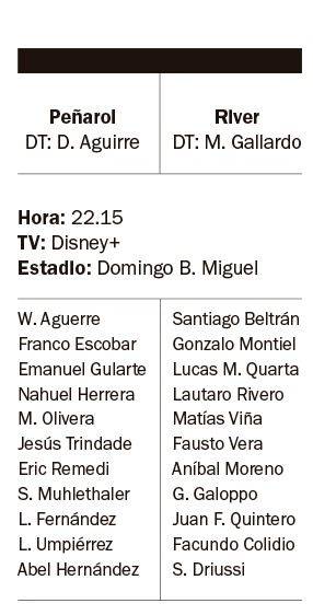 El Millonario se mide esta noche ante Peñarol desde las 22.15 en Maldonado, en un partido correspondiente a la Serie Río de La Plata. La transmisión televisiva estará a cargo de Disney+
