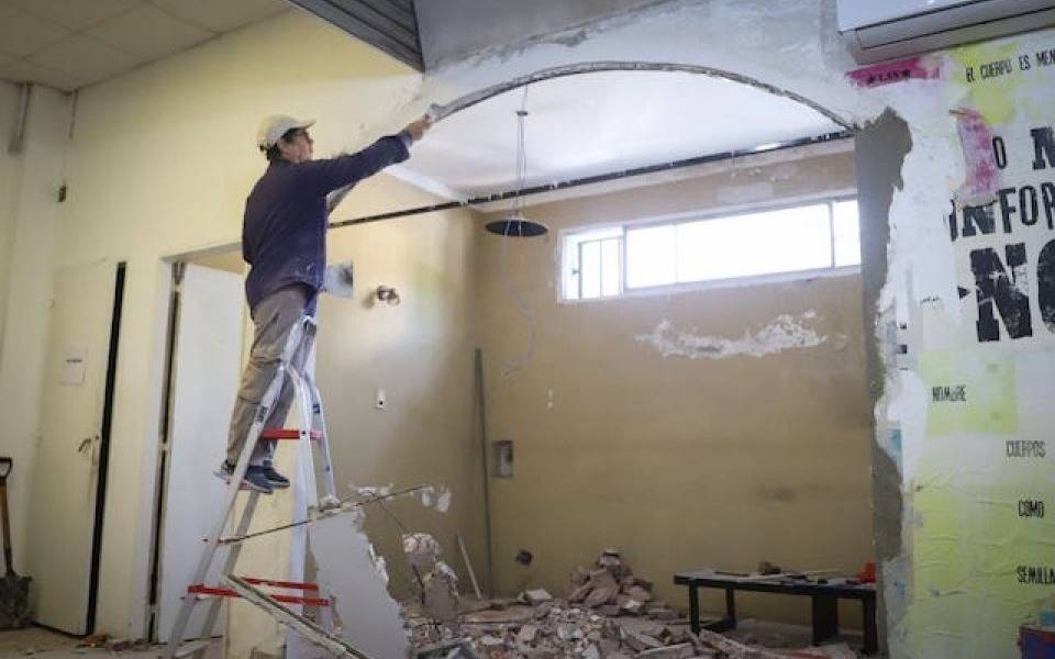 Una de las intervenciones más significativas se centra en el sector destinado al acervo patrimonial, donde se está ampliando el área técnica mediante la reutilización de elementos existentes y la demolición de tabiques para aumentar la superficie interna de guardado. En paralelo, el equipo de Arte Público y Muralismo lleva adelante el mantenimiento anual del edificio, que comprende limpieza general, pintura de fachada e interiores, la implementación de nuevos paneles expositivos y ajustes técnicos en la instalación eléctrica.