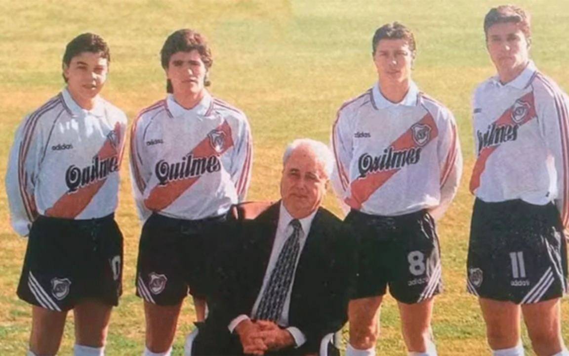 De izquierda a derecha junto a Alfredo Davicce: Marcelo Gallardo, Ariel Ortega, Matías Almeyda y Hernán Crespo.