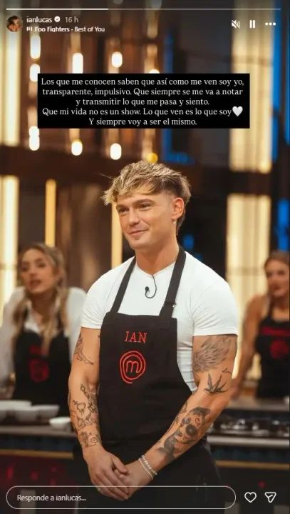 A su vez, la famosa descartó que el coqueteo pueda transformarse en algo real: “No puede pasar del juego a ser algo serio”. Poco después de esas declaraciones, Ian Lucas publicó una imagen suya en el set de MasterChef Celebrity, con Evangelina detrás, acompañada por un texto que muchos interpretaron como una respuesta directa.