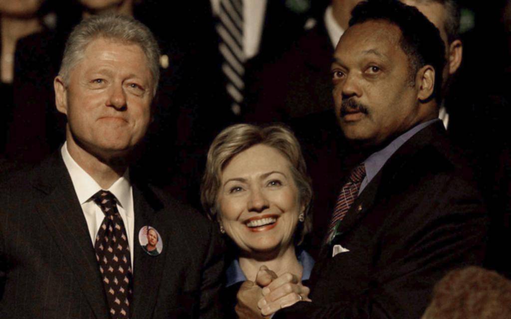 El expresidente Bill Clinton y su esposa Hillary Clinton junto a Jesse Jackson en Mineapolis en 2002 / AP