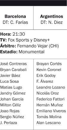 Argentinos Juniors tendrá un durísimo partido esta noche desde las 21:30, cuando visite a Barcelona de Ecuador en el partido de ida de la segunda fase de la Copa Libertadores. El encuentro se llevará a cabo en el Estadio Monumental Banco Pichincha de Guayaquil.