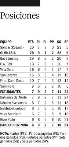 A todo esto. Estudiantes y Banco Provincia disputaron otro duelo platense el pasado fin de semana. Banco Provincia se encargó de dar la sorpresa, ya que se quedó con la victoria 3 a 2 (21-25, 25-21, 11-25, 25-17 y 15-13). El partido se disputó en el gimnasio albirrojo del Estadio UNO.