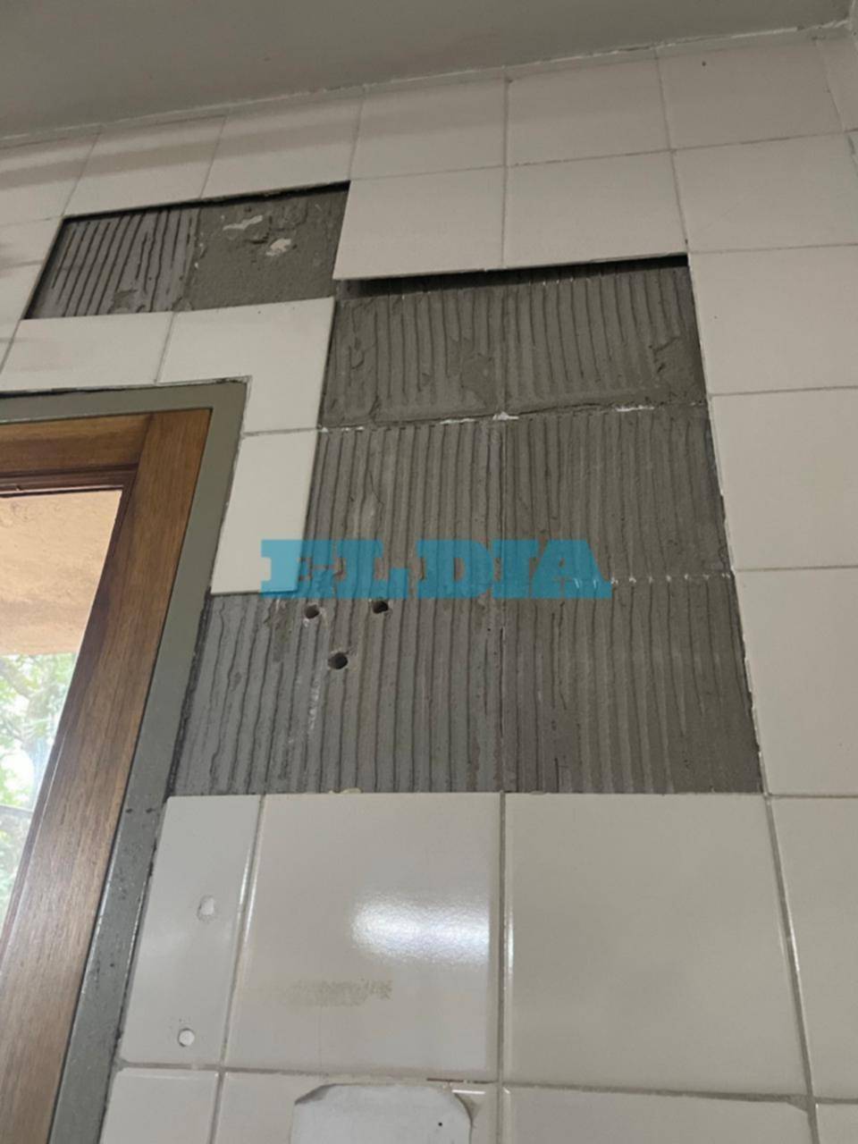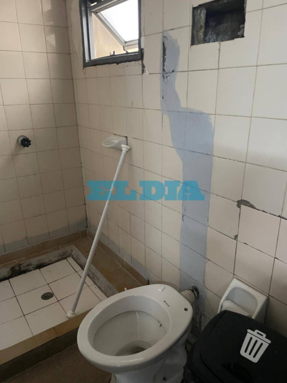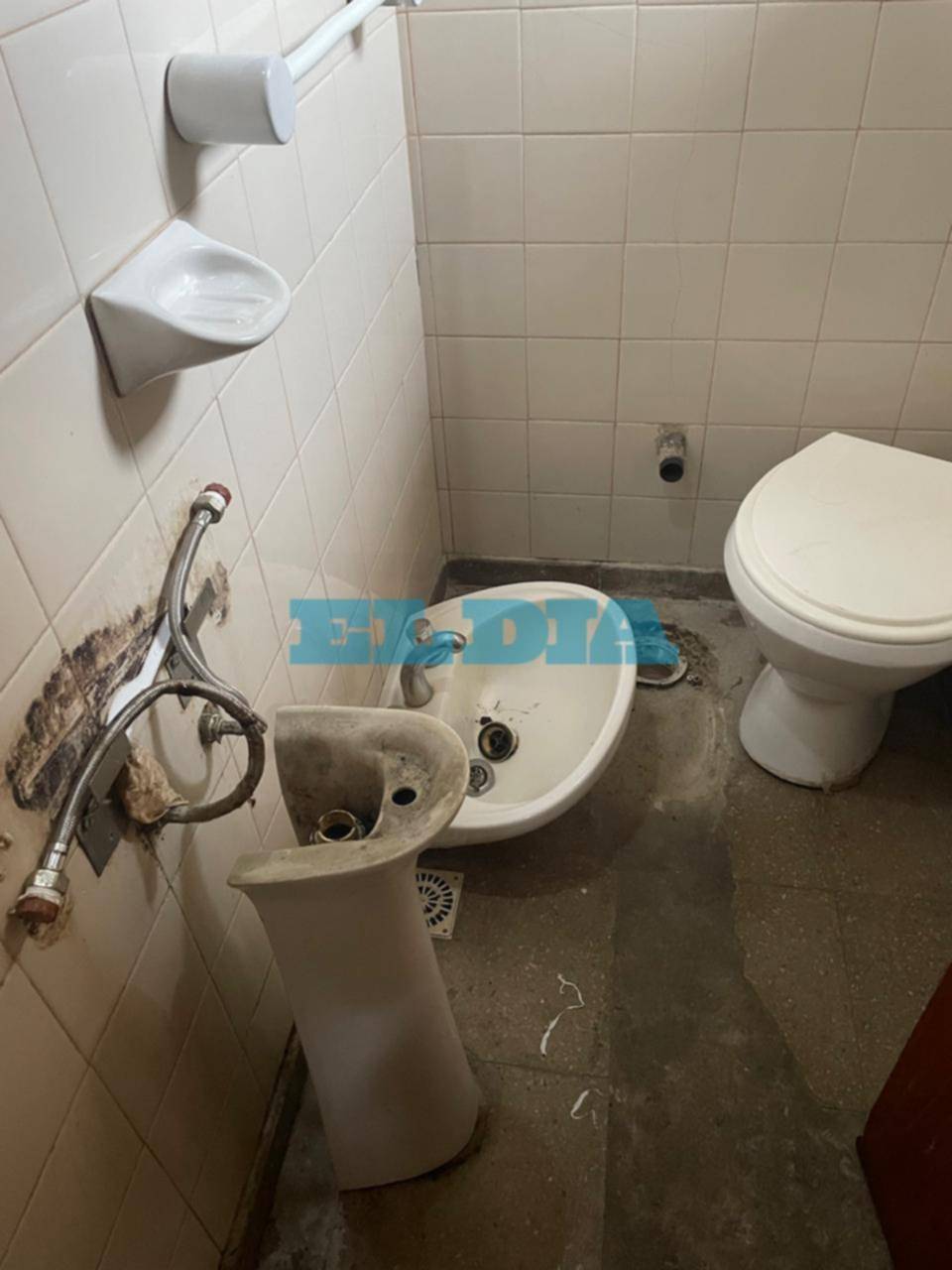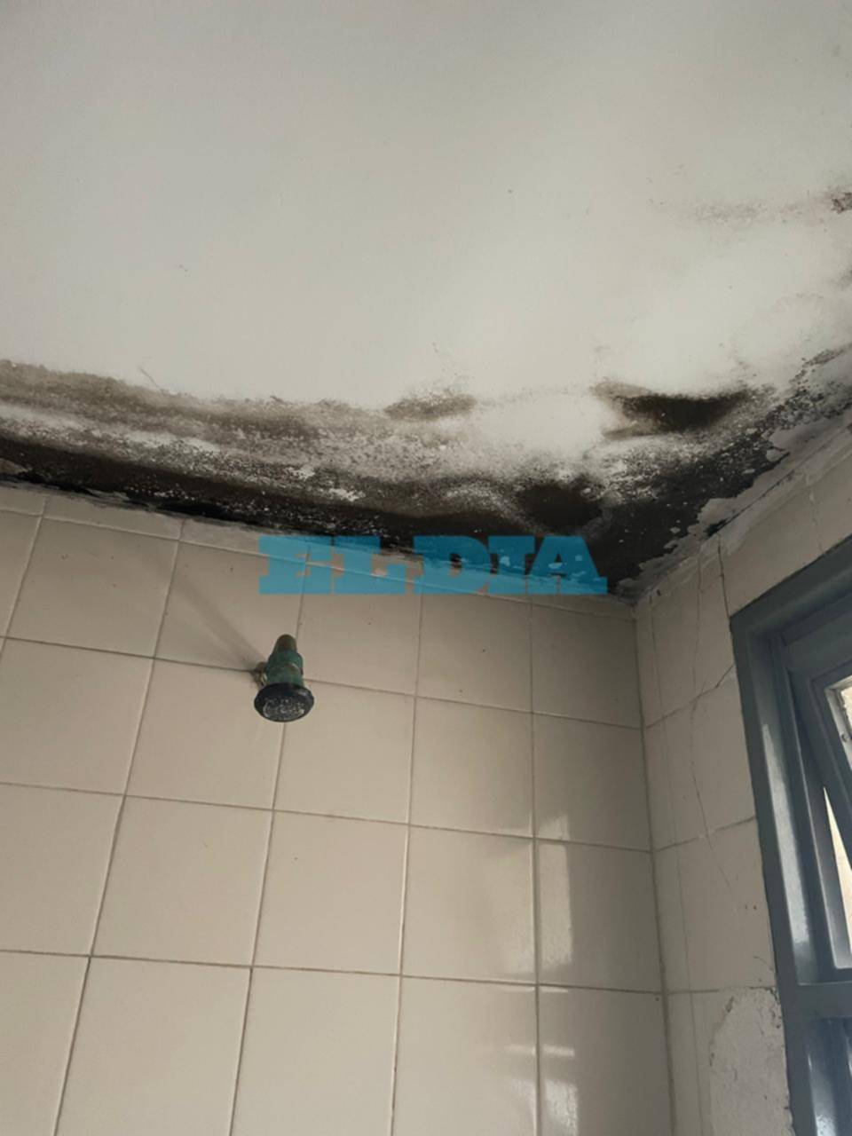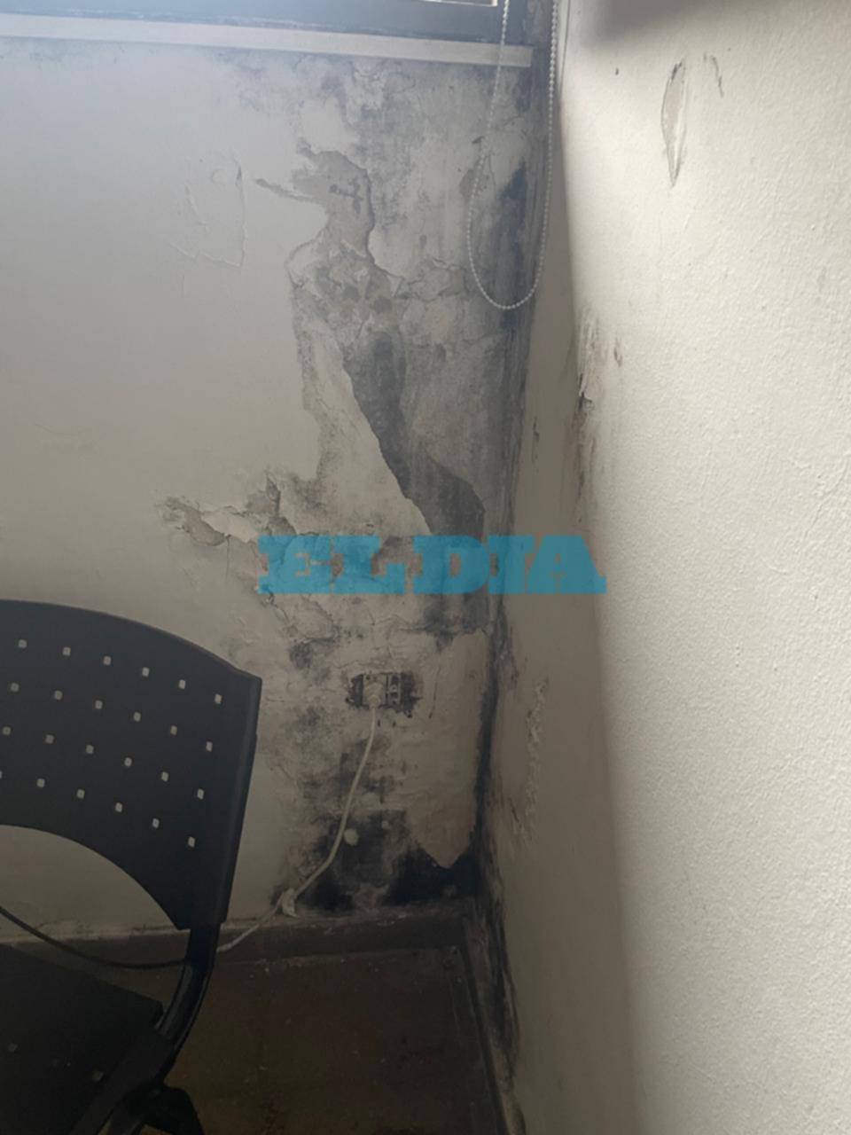 Tanto en techos como en paredes se observa el desprendimiento de pintura debido a la filtración de humedad y la falta de mantenimiento. En el caso de los baños la situación es extrema porque "faltan sanitarios" y no se pueden usar.