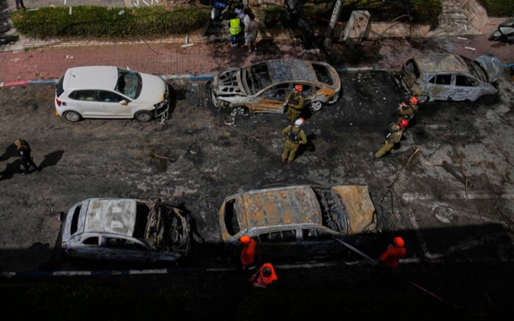 Fuerzas de seguridad y equipos de rescate israelíes inspeccionan un lugar alcanzado por un misil iraní en Petah Tikva, Israel / AP