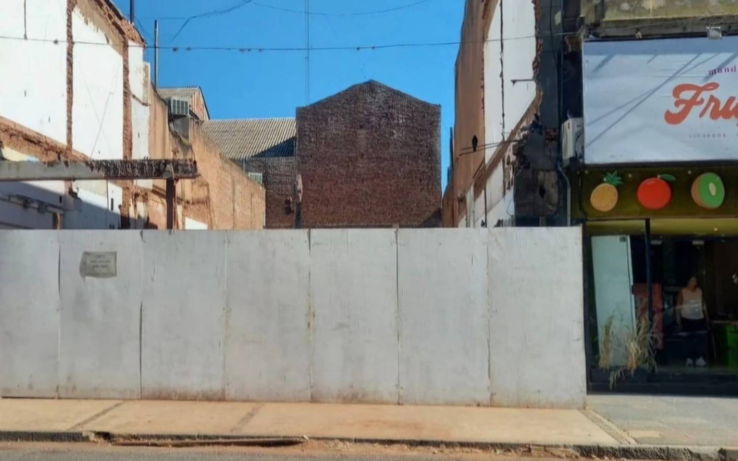 Un vacío y un baldío cubierto por tablas blancas, sin señalización de obra, reemplazan ahora lo que fue considerado un tesoro arquitectónico de la ciudad, que quedó reducido al recuerdo en antiguas fotografías.