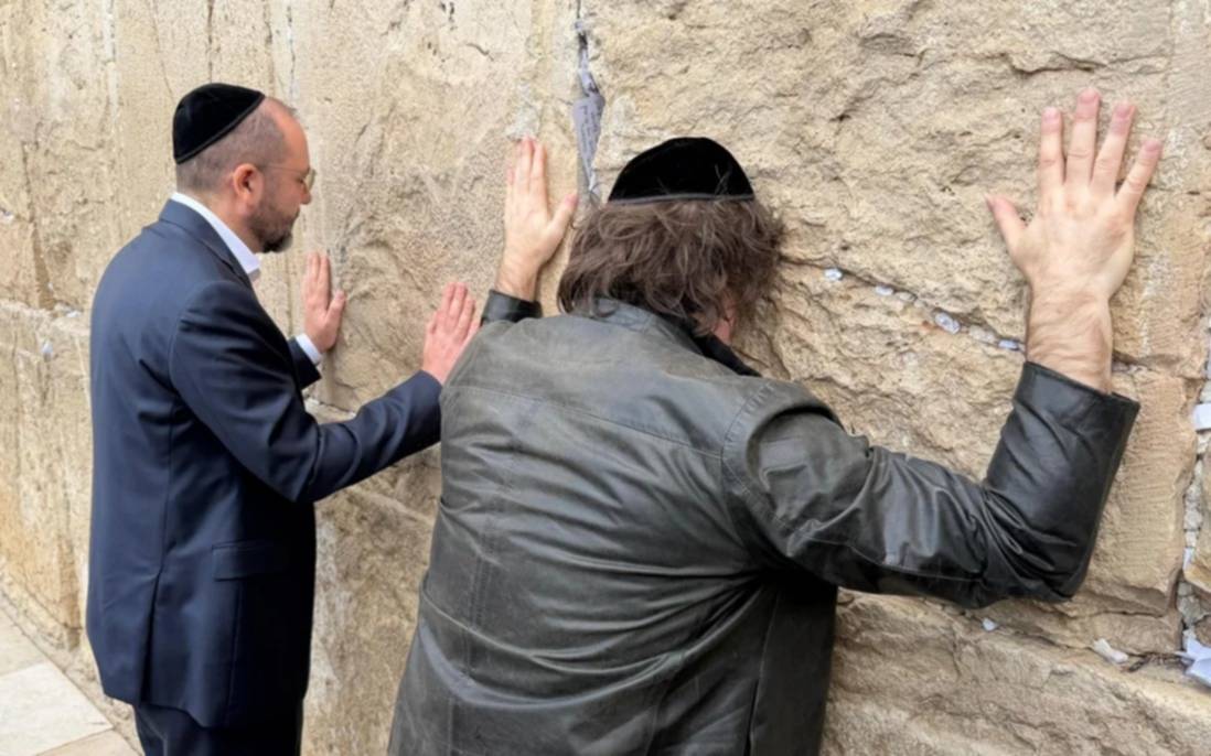 La primera actividad del presidente Milei en territorio israelí fue la visita al Muro de los Lamentos.