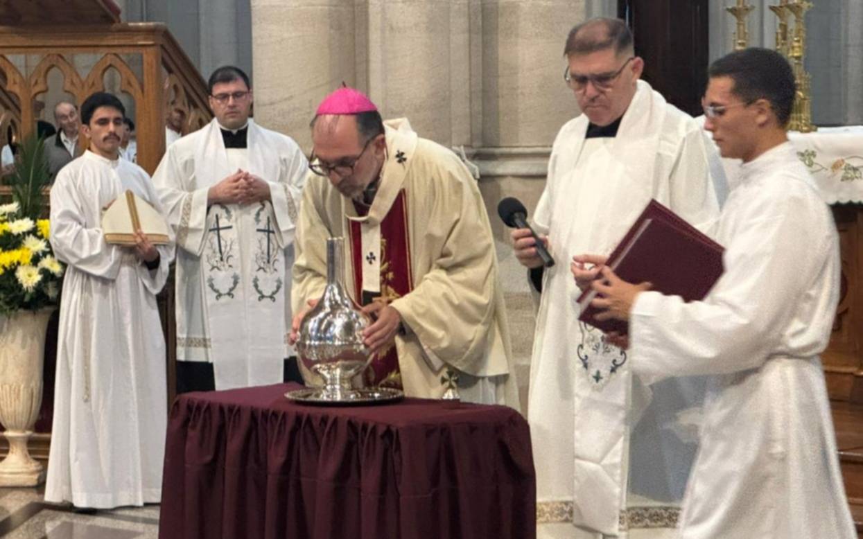 El arzobispo de La Plata, Gustavo Carrara, presidió en el marco de la celebración de de la Semana Santa la solemne Misa Crismal en la Catedral, que fue concelebrada por los obispos auxiliares y todos los sacerdotes de nuestro clero, quienes renovaron sus promesas.