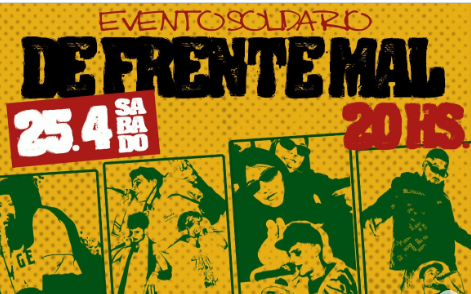 Las productoras GenteSeria y Conecto realizarán el festival solidario "De Frente Mal" este sábado 25 de abril en el espacio cultural Ciclo Quilmes para recolectar donaciones destinadas al comedor Las Mamás de la Ribera. El evento comenzará a las 20:00 en el predio ubicado sobre la calle Moreno 882. Los organizadores establecieron que la entrada al recinto consiste exclusivamente en la entrega de alimentos no perecederos o ropa en buen estado.