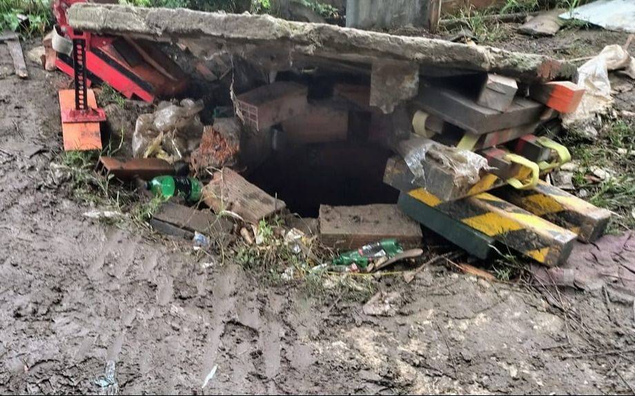 Dada la inestabilidad del terreno y el peso de la estructura, los efectivos iniciaron tareas de aseguramiento para remover la tapa de cemento sin poner en riesgo la integridad de los animales ni de los rescatistas.