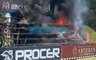 VIDEO.- Incendio en el Club San Luis: se prendió fuego la tribuna de la cancha principal de rugby