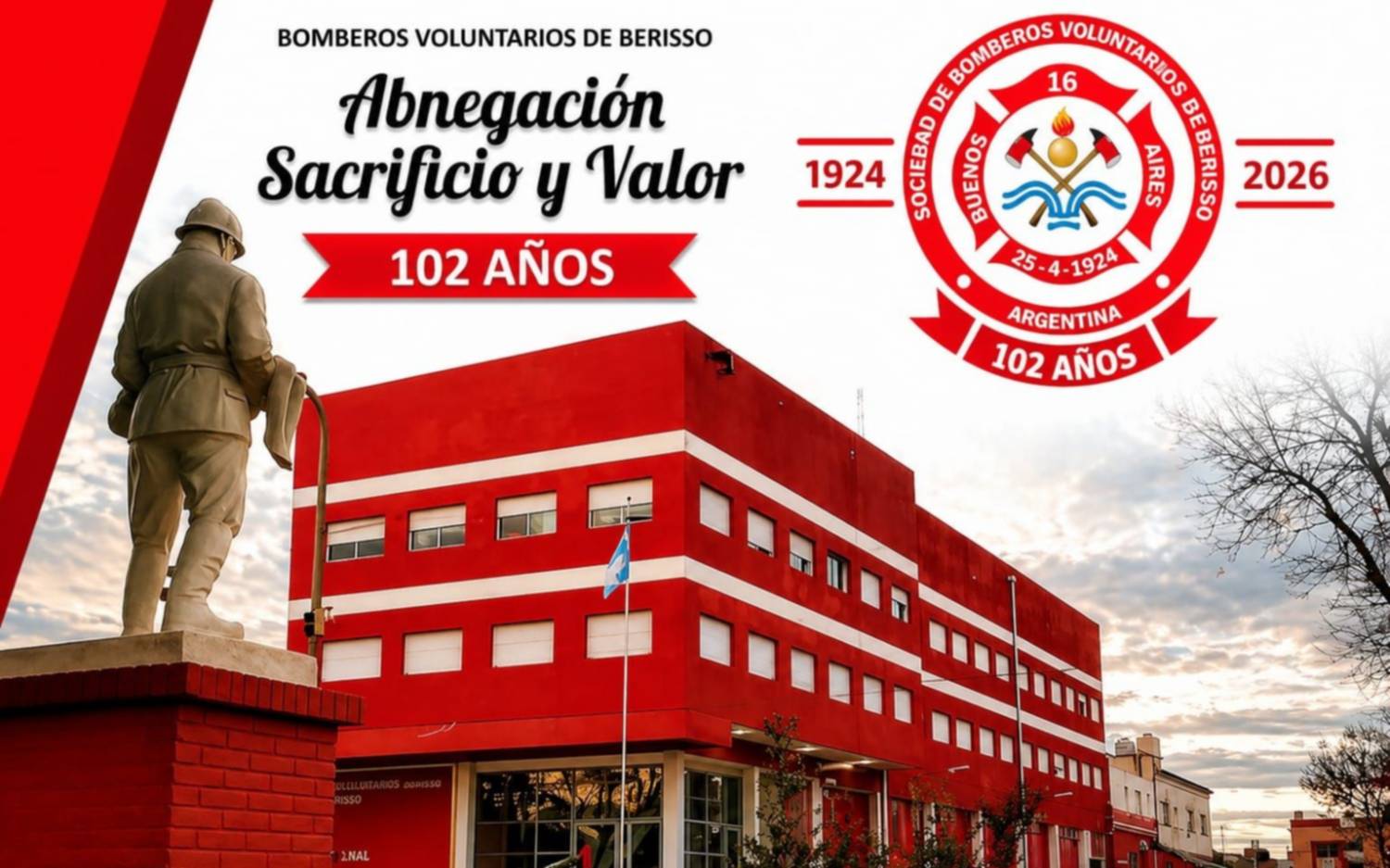 La ciudad de Berisso conmemora este 25 de abril un nuevo aniversario de una de sus instituciones más emblemáticas: la Sociedad de Bomberos Voluntarios, que cumple 102 años de servicio ininterrumpido a la comunidad.