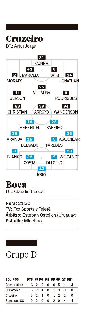 En su mejor momento futbolístico de los últimos años, Boca afrontará esta noche un nuevo compromiso por Copa Libertadores, cuando enfrente en el Mineirao al Cruzeiro, partido que comenzará a partir de las 21.30 y que forma parte de la tercera fecha del Grupo D.