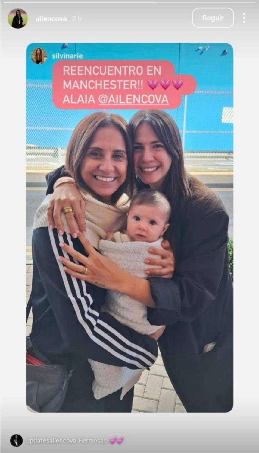 Ayer, la madre de Mac Allister compartió en sus redes una foto con su nuera y su nieta Alaia, abrazadas y sonrientes, que decía: "Reencuentro en Manchester!!", y muchos corazoncitos como para aclarar que está todo bien entre ellas.