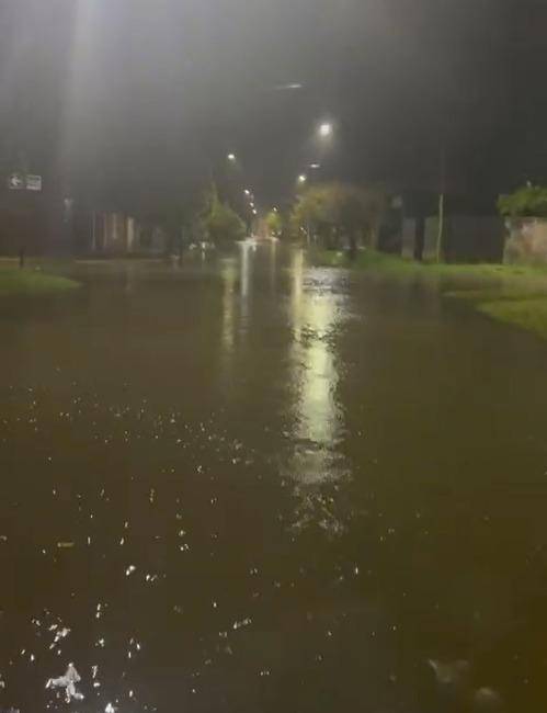 En 18 y 163, Berisso, la lluvia generó el anegamiento de la calle/ el dia