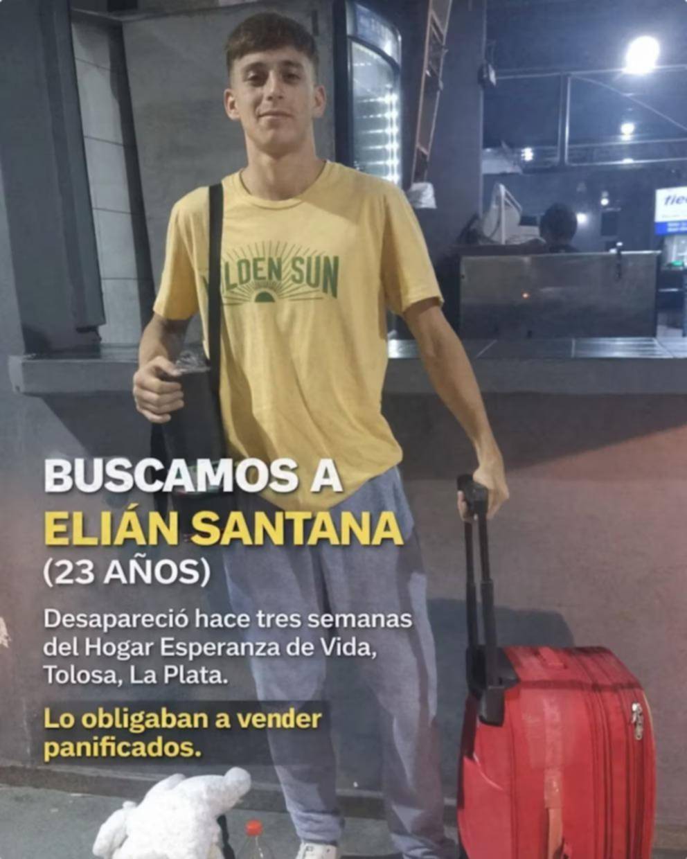 La desaparición de un joven de 23 años mantiene en alerta a su familia y es motivo de investigación en la ciudad de La Plata. Se trata de Elián Stefano Alberto Rueda Santana, oriundo de Paraná, Entre Ríos, quien fue visto por última vez el 7 de marzo tras retirarse del Hogar “Esperanza de Vida”, en la localidad de Tolosa, donde realizaba un tratamiento por consumo problemático.