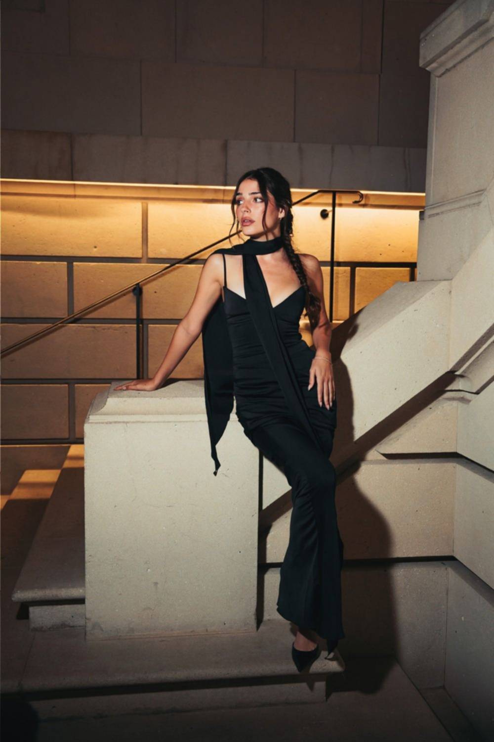 Candela Gallo posó con un estilismo negro minimalista /web