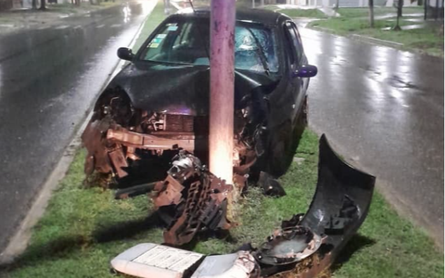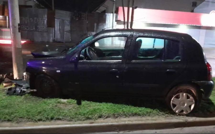 Como consecuencia de la calzada mojada y la brusquedad del movimiento, el automóvil derrapó y golpeó de manera directa contra el poste de luz. El frente del rodado quedó con daños materiales de magnitud producto de la inercia del choque.