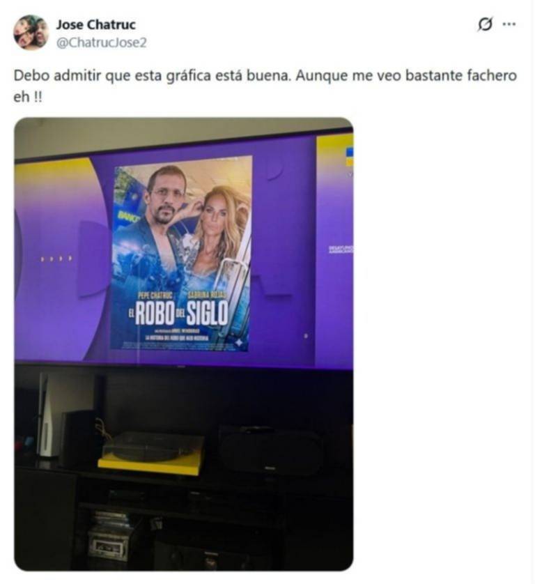 Por otro lado, compartió una imagen de la película El robo del siglo. Algún malintencionado borró a los protagonistas y puso una foto de José y Sabrina. "Debo admitir que esta gráfica está buena. Aunque me veo bastante fachero, eh", bromeó para cerrar el ex futbolista.